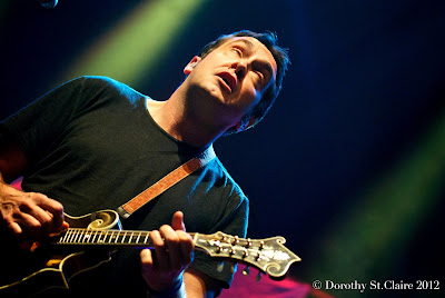 "Kentucky Mandolin" was the first and only instrumental of the night, followed by "Loved You Enough", the first of many Dave Johnston numbers. Then Adam took us into "Damned if the Right One Didn't Go Wrong" with the best guitar riff ever. Ben sang the hell out of it, and Dave and Jeff sure didn't disappoint, either. "You can't say I didn't warn you!" Ben said after that one. "Folks, give it up for DJ Jazzy Johnston on the 5-string love box of desire. During that last song, he took me places." They were determined to get us nice and sweaty, following "Damned" with "Free To Run". But then, after a short pause to re-tune, they played "Night is Left Behind", and my heart skipped a beat as they played one of my all-time favorite songs. "Pockets" came next, followed by the best singalong you will ever see, "40 Miles From Denver". It sure is something to look out at all of our friends with their eyes closed, singing their hearts out. They played "Shake Me Up" and then threw themselves into a raging "Raleigh and Spencer", closing the first set. Jeff knows just how to get the crowd in a frenzy, and that's exactly what he did before the band left us for their break.