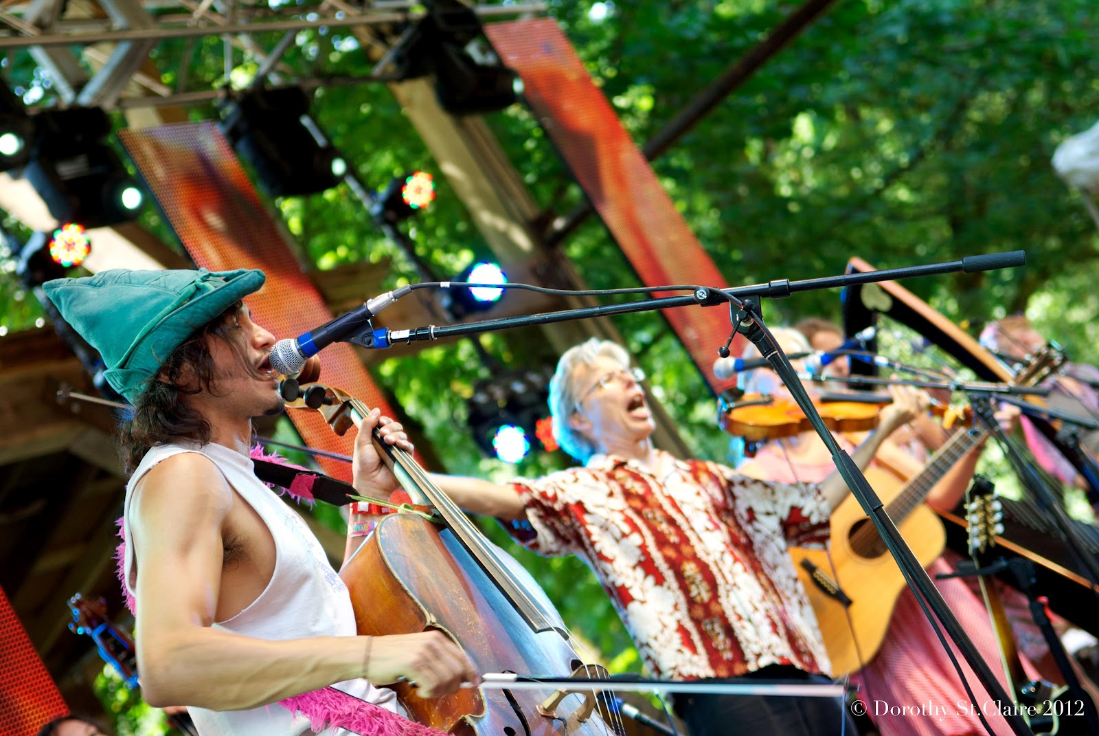 Next, Ben sang "Straight Line", a new song to the festival. Then the smiles grew huge all around as "Polka on the Banjo" filled the air and our hearts. Jeff pointed out the bad-ass robot costume walking around the bowl, before Adam kicked off "Corona" - which was hardcore and awesome, as usual. Right when the song ended, Darol went into "Polly Put the Kettle On". Man oh man, what a treat. I love this song when Yonder does it alone, but then bring in the amazing Darol, the writer of the song, and it feels totally different.