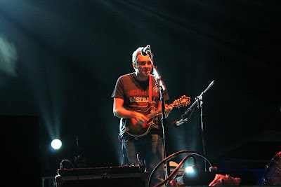 One of my favorite classic Yonder tunes started the evening off - “Out of the Blue”. Jason’s fiddle added an awesome dimension to the music. Everyone was bouncing to the beat in the sand. It was Ben’s turn to say hello and he told us some good advice, “not to get sand up in that thing!” Nice but true, Ben! “Criminal” came next. It gave me a taste of home in Colorado when I heard the lyrics “going back to Colorado”. Love it! We were ready for some bluegrass and knew we were going to get some, especially with Jason on the stage. They dedicated the set to all the other bands that were playing there: Leftover Salmon, Railroad Earth, and The Infamous Stringdusters. What an excellent selection of bands to play with Yonder! Dave had to give his input by saying that he was going to kiss Vince Herman on the head! Ok, we were ready for some bluegrass in paradise! “High on a Hilltop” was up next. This song got the crowd hopping. I was really excited to hear “Left Me in a Hole” next. I love hearing that song so early in the set. You could see the crowd singing along. Next it was Jason’s turn for a song, yee-haw! With a couple notes we heard “Old Dangerfield”. Just what we needed, some good old fashioned bluegrass! There was a lot of banter between the banjo and fiddle. Ben chimed in next and said there were a lot of horrible things they had to do to get to play in Mexico, and this song was all about them. “Troubled Mind” came next, and then “Pretty Daughter” really got us rocking. Could this set get any better? Yes! Jason’s fiddle solo just added fuel to the fire. Dave was really on it for this song! “All the Time” calmed the crowd down a little. Adam was flawless. “Holdin” continued the mellow vibe, and Ben really belted it out while smoke filled the ocean air. Adam’s strumming lead us into “Only a Northern Song”. The tempo picked up with the banjo, guitar and fiddle. Then the mando and bass kept building, and the fiddle finished it off. Wow is all I have to say! Ben took out his bow and pulled us into the next song, “No Expectations”. I really love the sound of the bow on the bass! Dave was mesmerizing on the banjo, and everyone was in harmony. Whew, set break!